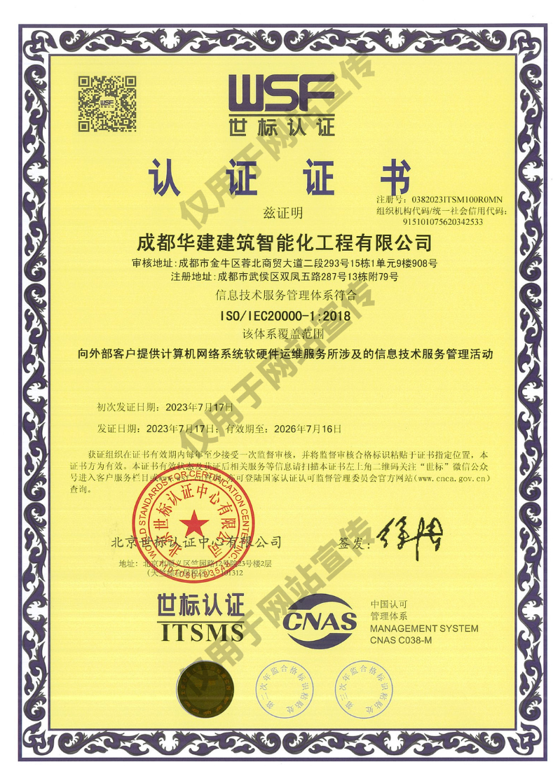 信息技術服務管理體系證書