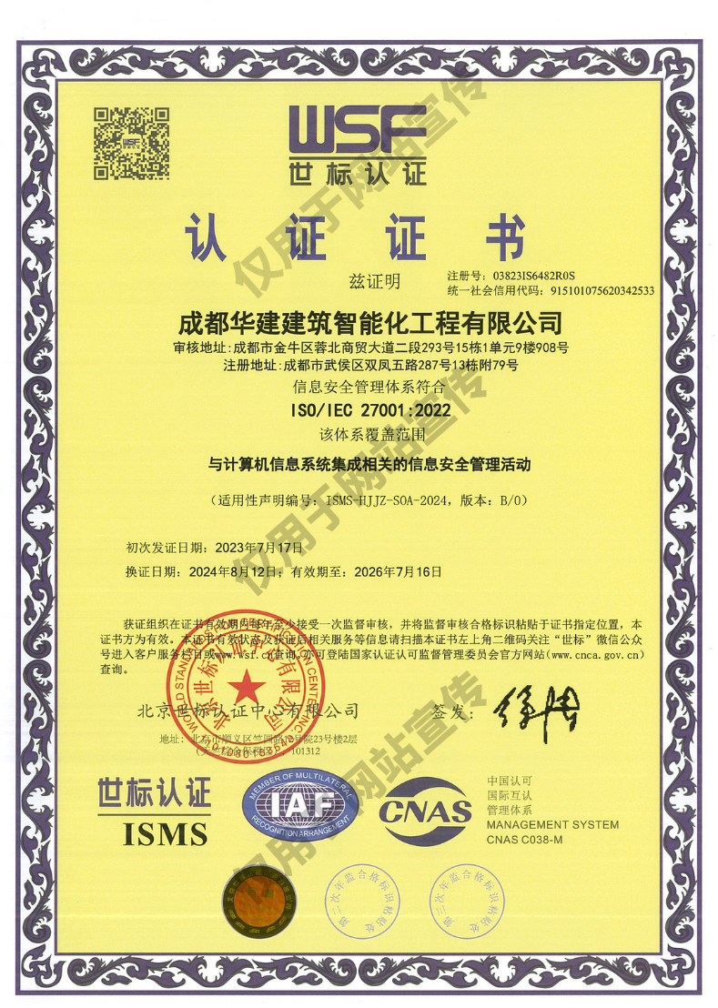 信息安全管理體系認證書